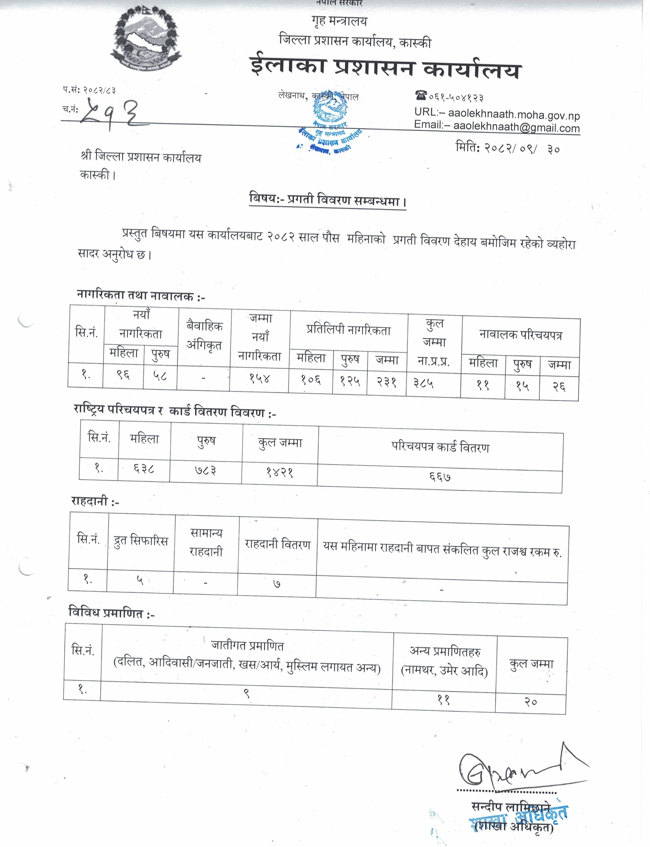 २०८२ कार्तिक १ देखि पौष मसान्तसम्म त्रैमासिक प्रगती विवरण