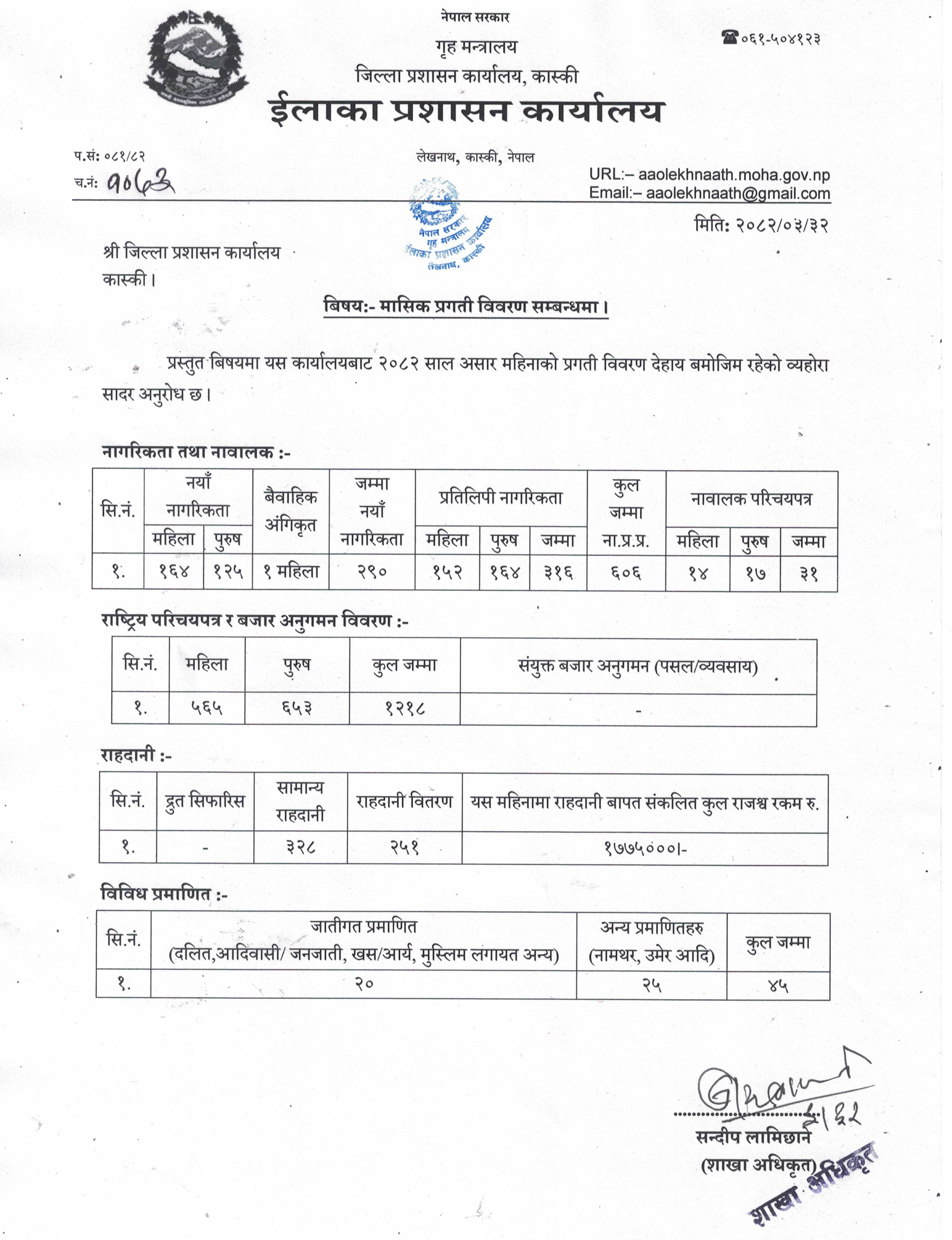 २०८२ कार्तिक मासिक प्रगति विवरण