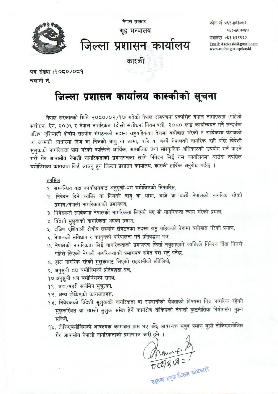 जिल्ला प्रशासन कार्यालय कास्कीको अत्यन्त जरुरी सूचना