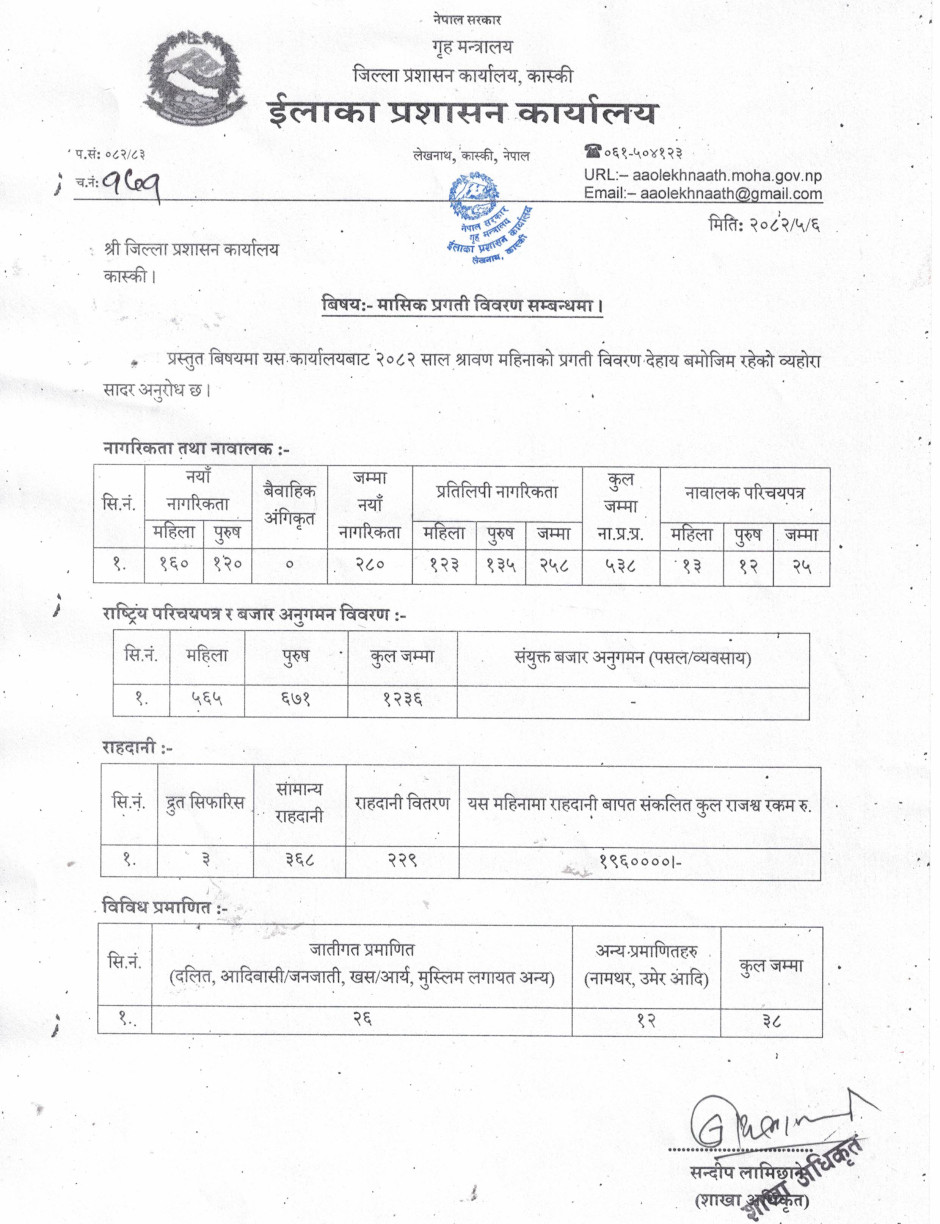 २०८२ श्रावण महिनाको मासिक प्रगिति विवरण